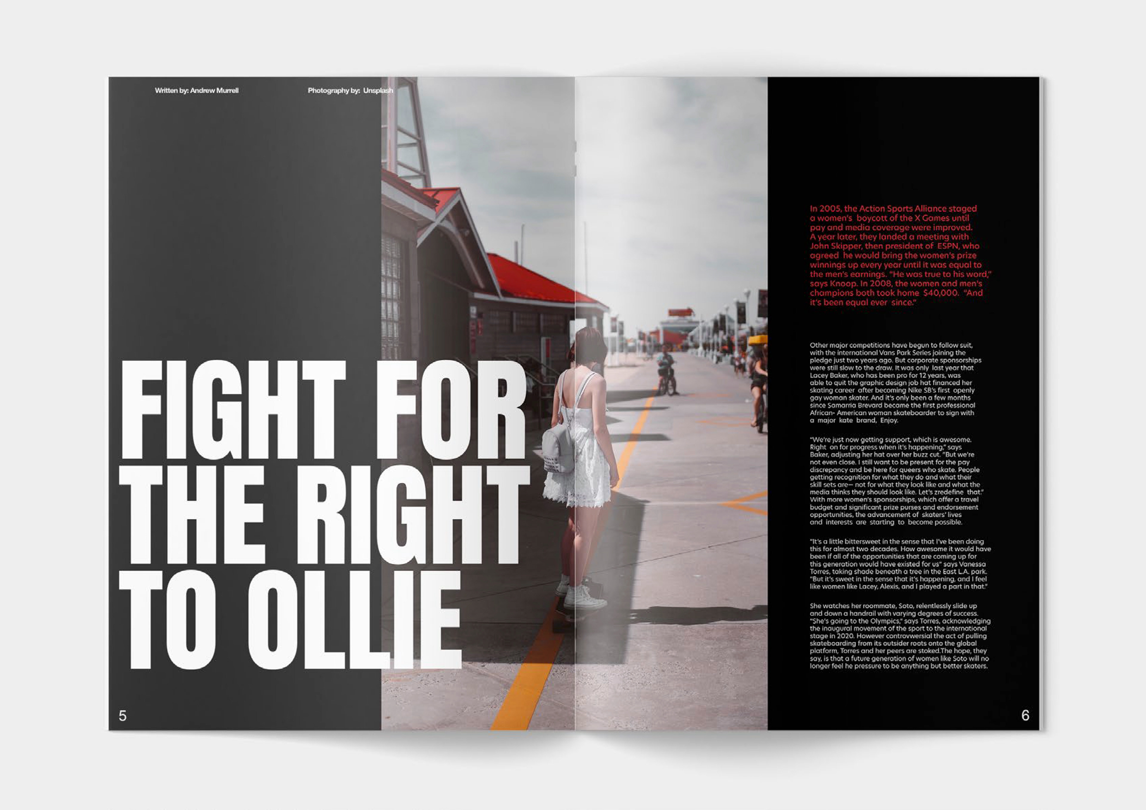 and feel unstoppable. Using bold type, monochrome tones, and raw editorial style photography, the editorial design reflects power, energy and passion